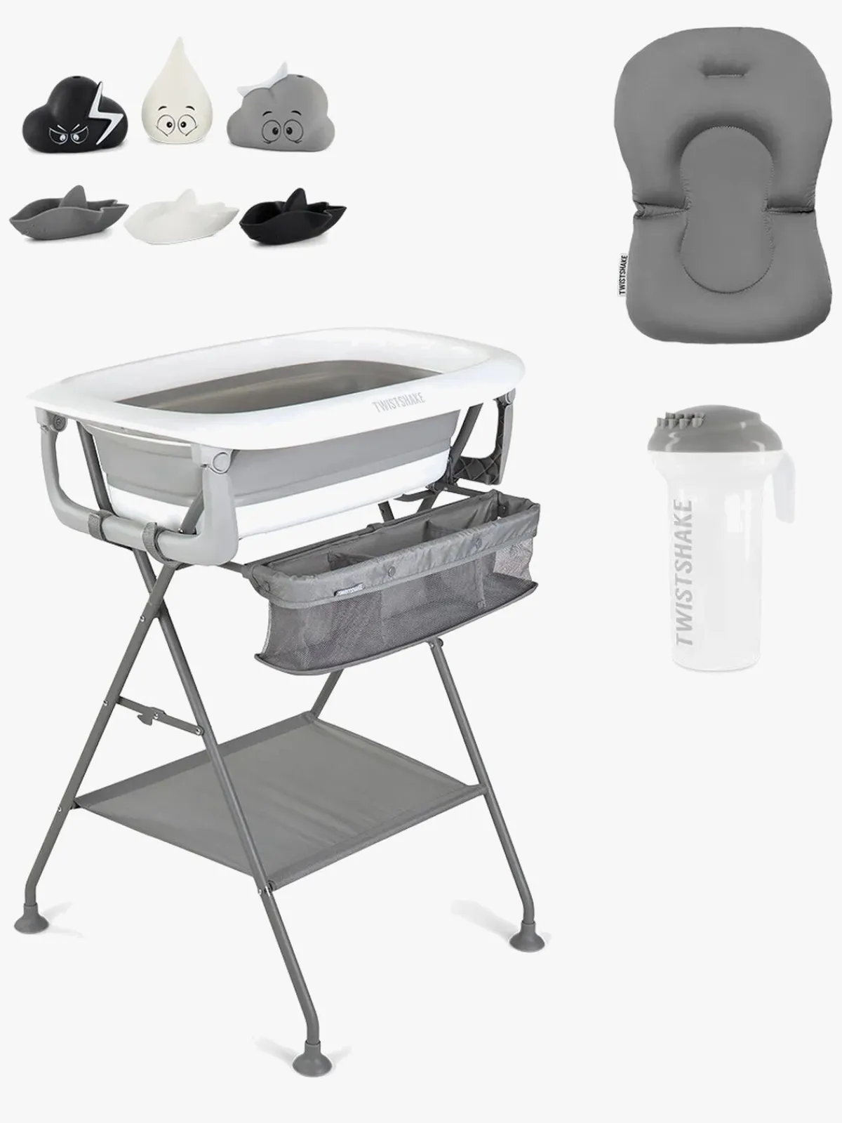 – Indeholder: 1 badekar, 1 stander, 1 pude, 1 skyllekande, 3 badelegetøj, 1 afløbsslange.
