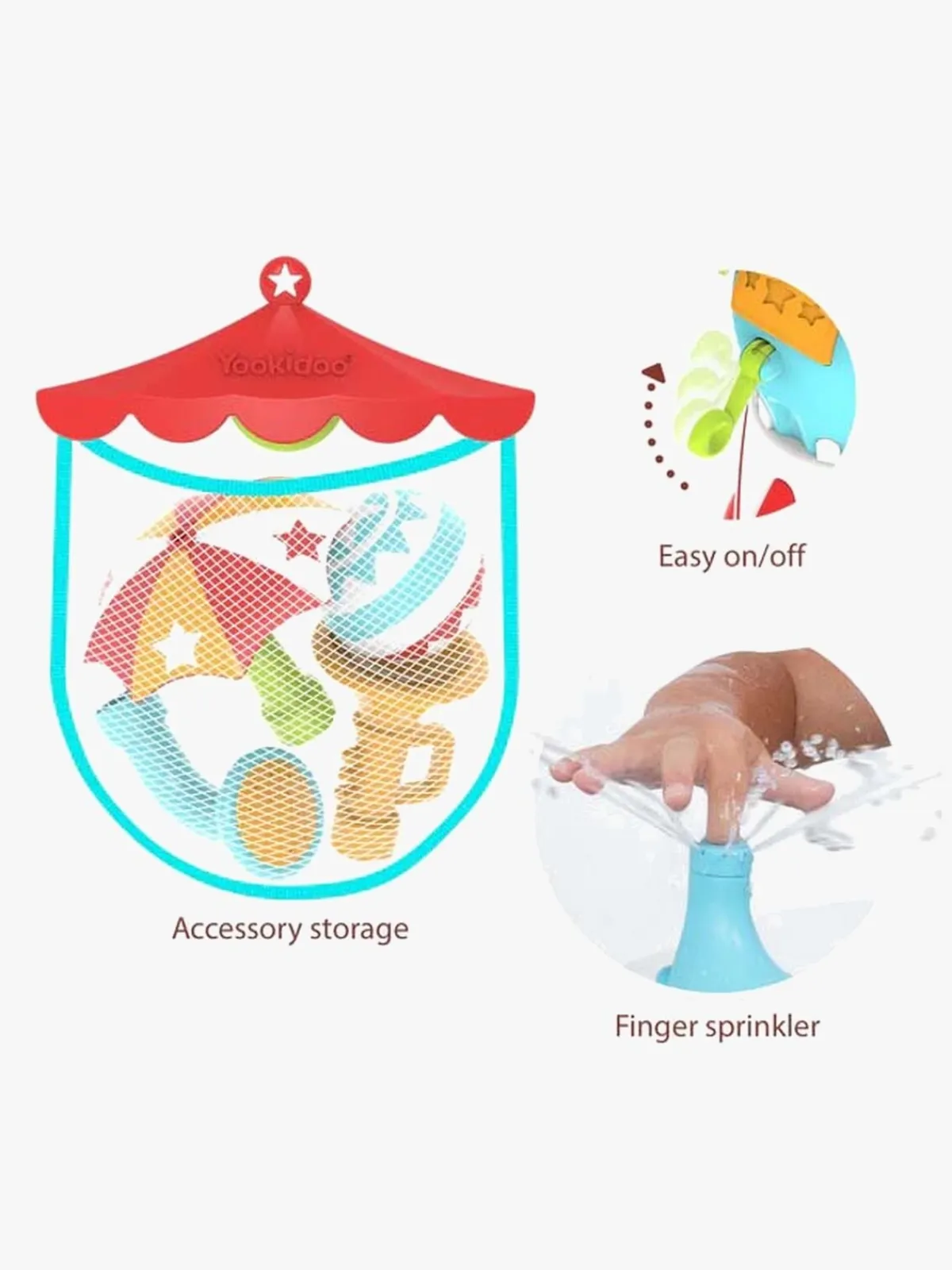 – Indeholder: 1 brusehoved, 1 paraply, 1 trompet, 1 bold.