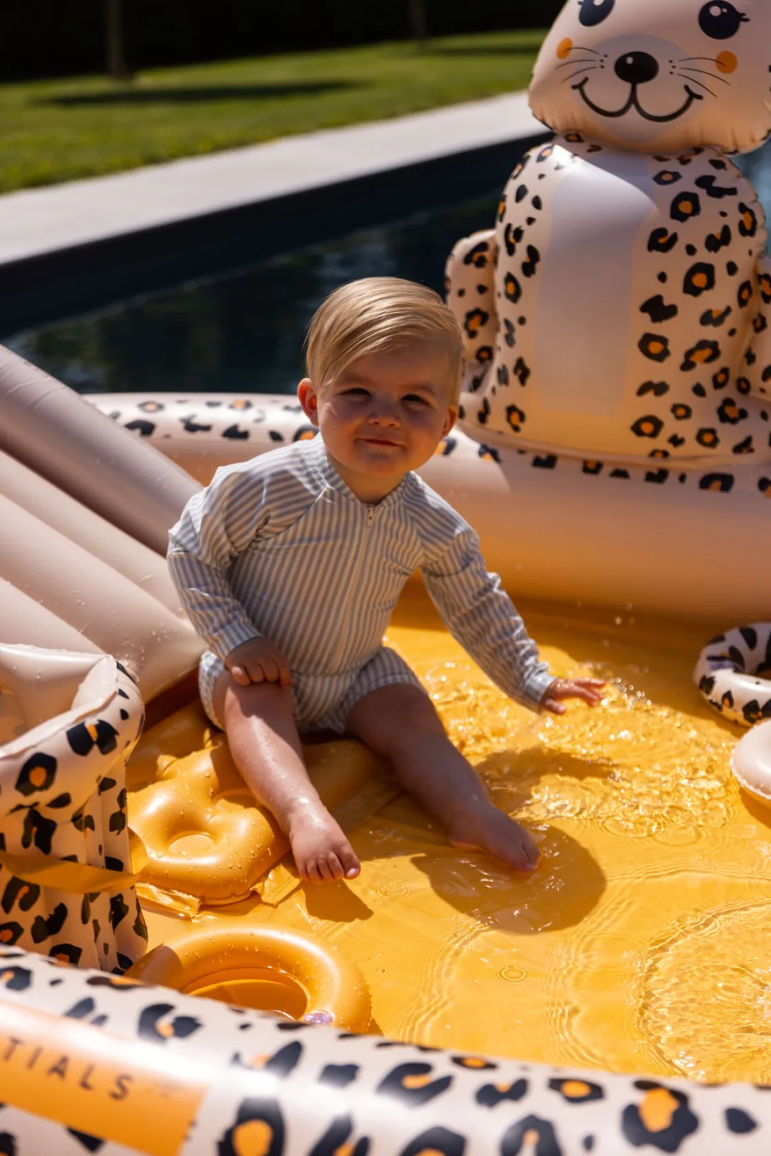 – Indeholder: 1 eventyrspool med en rutsjebane, 3 oppustelige ringe, 1 oppustelig frisbee.