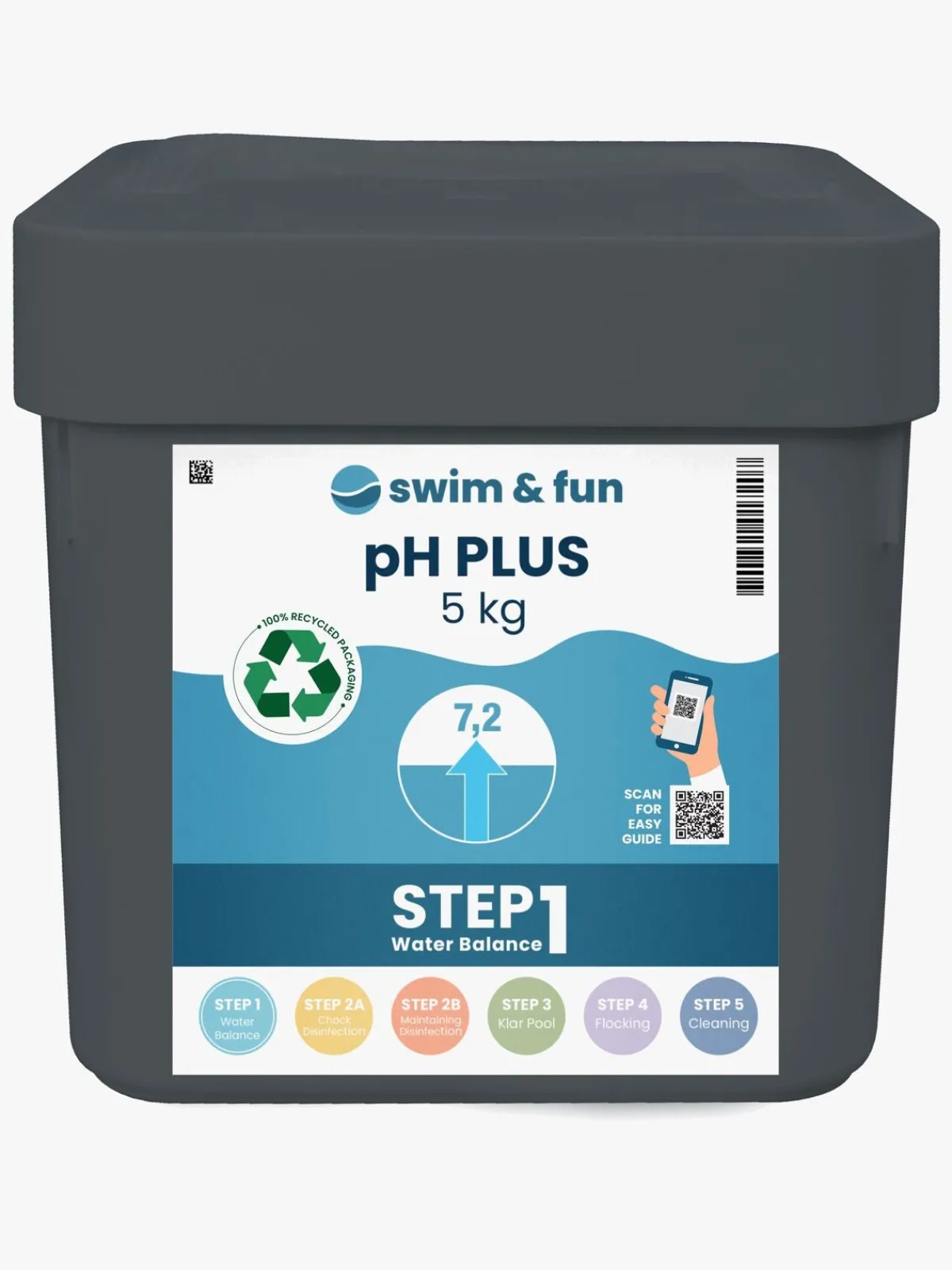 – Dosering: 100 g pH-Plus øger pH-værdien med 0,2 pr. 10.000 L vand.